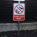 トゲのあるアガベを触らないように注意を促す看板です。