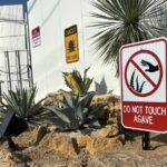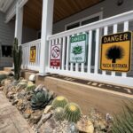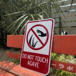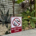 アメリカンな雰囲気を出してくれるアガベを使ったドライガーデンですが、アガベのトゲは危ないのでこのロードサインでオシャレに注意を促しましょう。