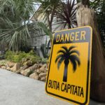 トゲのあるココスヤシを触らないように注意を促す看板です。