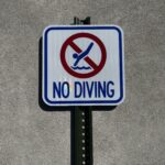 プールや川、海などで飛び込みをしないように伝える看板です。