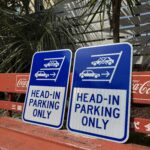 前向き駐車で車を停めるように促す看板です。シンプルなアイコンでわかりやすいデザインに仕上げました。