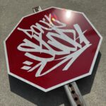 有名なアメリカのSTOPサインをグラフィティの"tagging"(タギング)でDON'T STOPにデザインした看板です。