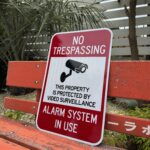 不法侵入禁止、この敷地は監視カメラによって保護されています。警報システム作動中
